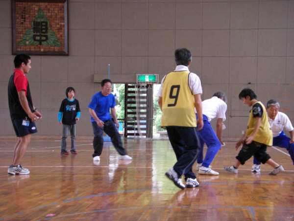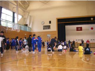 あいにくの雨でしたが体育館を全面使わせていただき楽しくクリニックを行うことができました。午前の部と午後の部に分かれて行われたこの日のイベントには城山地区の方々を中心にたくさんの方が様々なスポーツの企画を楽しんでいました。