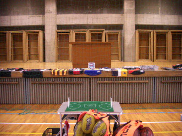 オーストラリアンフットボールのブースは試合の映像あり、ユニフォームあり、参加賞ありのにぎやかなものとなりました。この日合計4回行われたコーチングセッションはハンドボール、キック、マークの3グループに分かれ、ローテーション。一通りのスキルを知った上で後半は試合形式のゲームを行うというものでした。