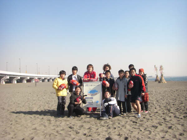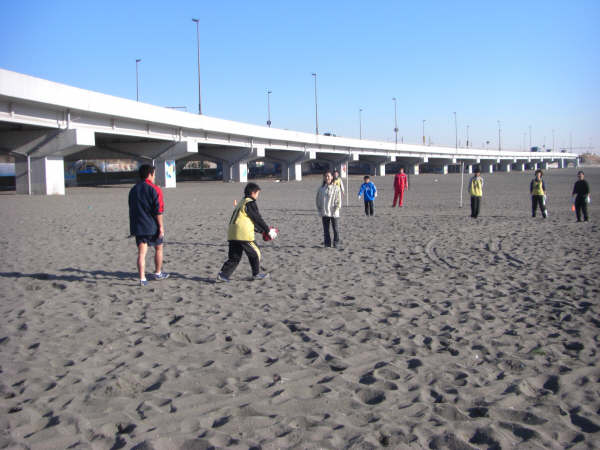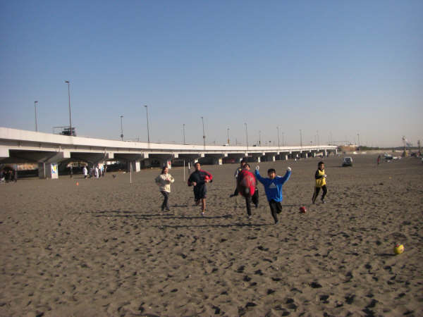 当日は快晴で風もなく絶好のフットボール日和。まだ慣れない砂浜の感覚に少し戸惑いながらも楽しく体を動かしました。